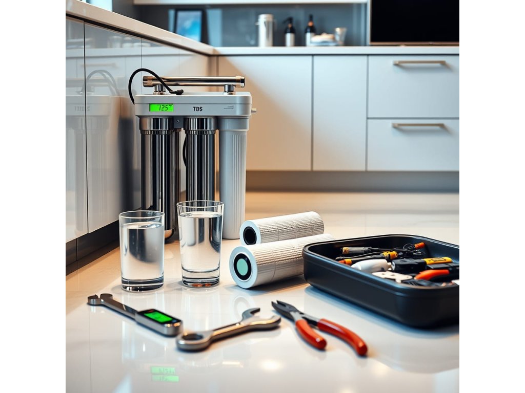 Montáž jednoho komponentu . 1 komponent je systémm osmozy. 1 komponent je baterie sdružená.